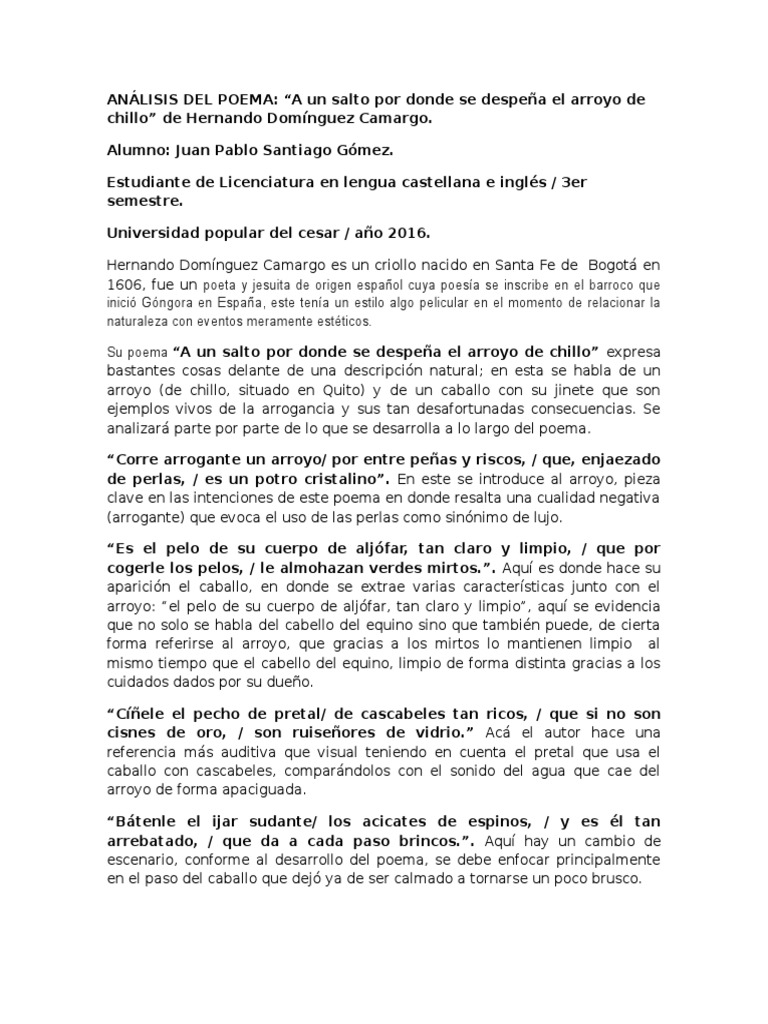 Este análisis de métrica se hace automáticamente mediante un programa y debe usarse de modo orientativo. Los poemas no tienen ttulo; Enviado por memilarrondo • 24 de junio de 2011 • 1.739 palabras (7 páginas) • 9.317 visitas. Los poemas son un tipo de expresión lírica estructurada en. Análisis literario del poema al lector.